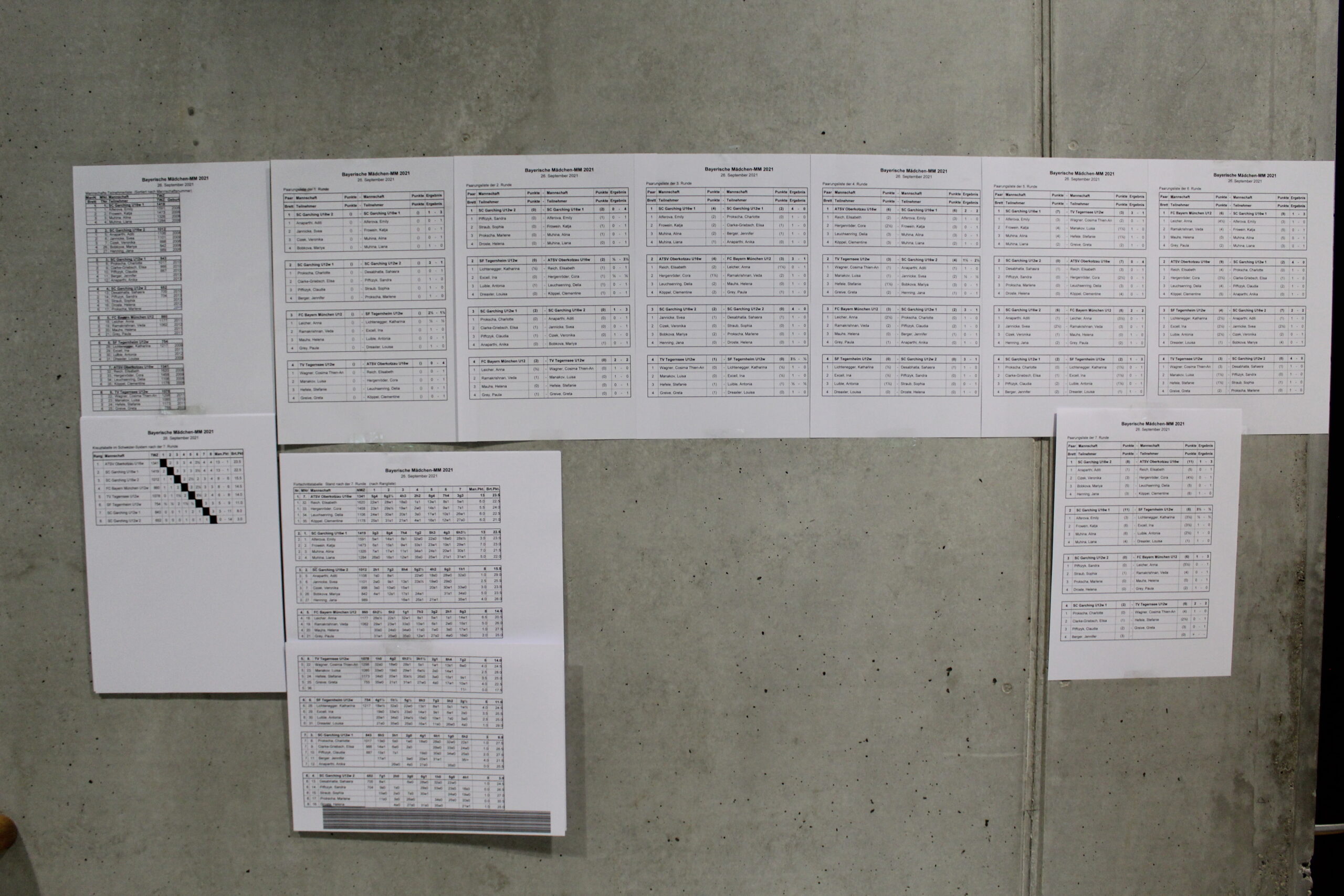 Nach der Mittagspausen wurden noch vier Runden gespielt. Nachdem bisher die vier Garchinger Mannschaften untereinander gespielt hatten, kamen wir jetzt gegen die zweite U16-Mannschaft von Garching ran. Mit einem Sieg von Cosima und einem Remis von Luisa schafften wir knapp das Unentschieden nicht. Die fünfte Runde versprach nicht besser zu werden, da die erste U16-Mannschaft aus Garching unser Gegner war und diese schließlich um den U16-Titel kämpften. Am Ende konnte Cosima aus der Eröffnung heraus gewinnen und sicherte uns einen Brettpunkt.